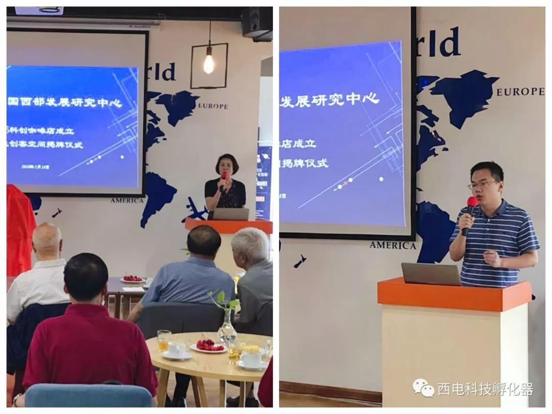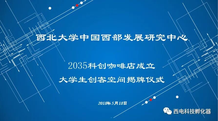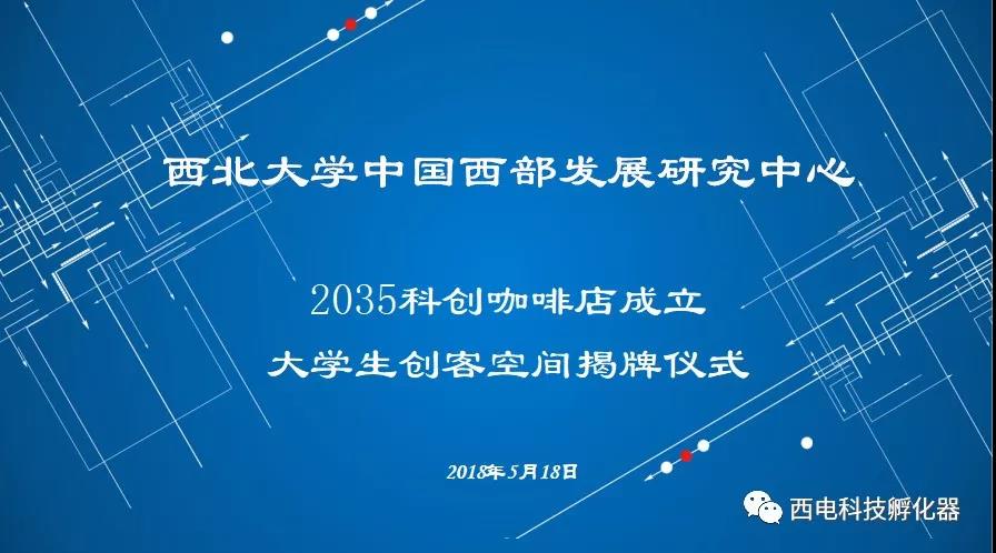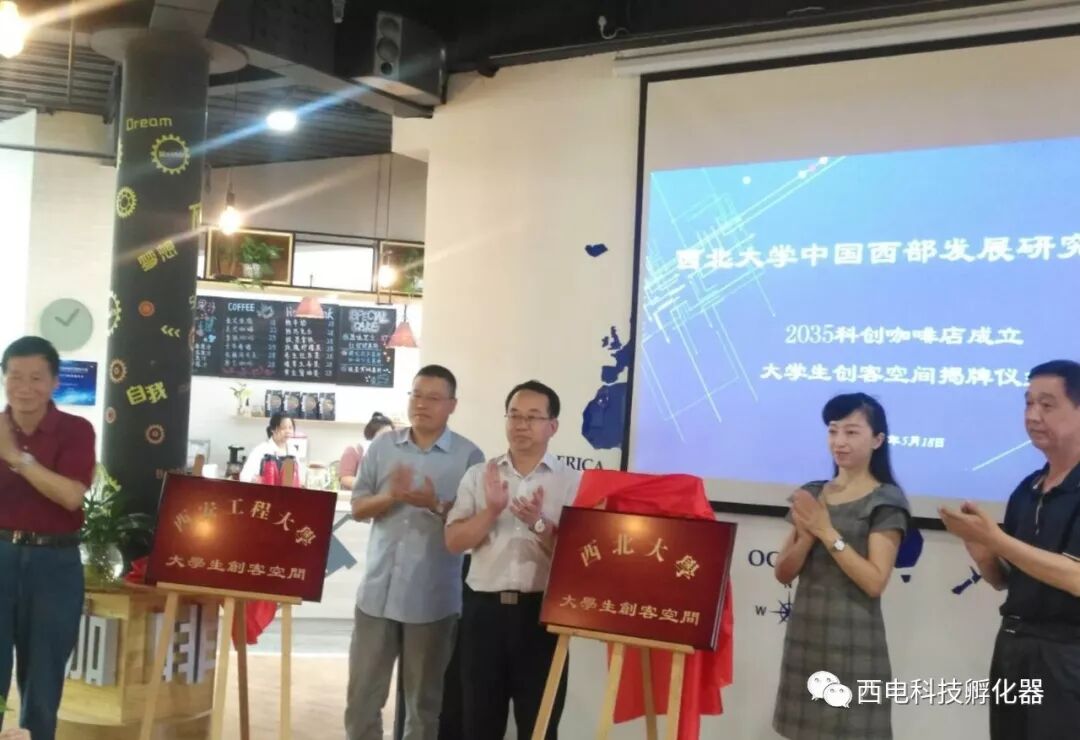 2018年5月18日上午,由西北大学中国西部发展研究中心携西电科技孵化器联合举办的2035科创咖啡店成立暨大学生创客空间揭牌仪式在咖啡店隆重举行。